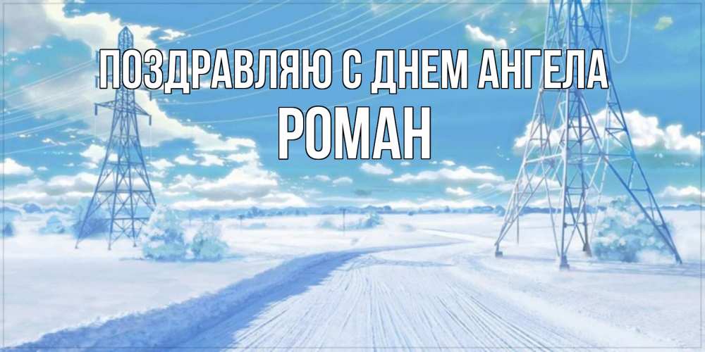 Открытка Поздравляю с днем Ангела Роман. хорошее зимнее утро с линией электропередач. зимняя открытка