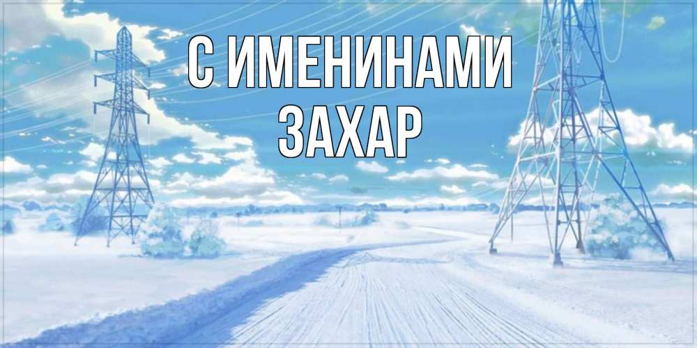 Открытка С именинами Захар. хорошее зимнее утро с линией электропередач. зимняя открытка