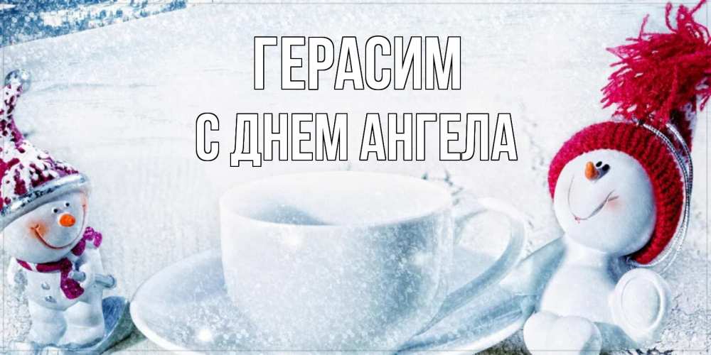 Открытка Герасим С днем ангела. открытка со снеговиками. чаша замерзшая