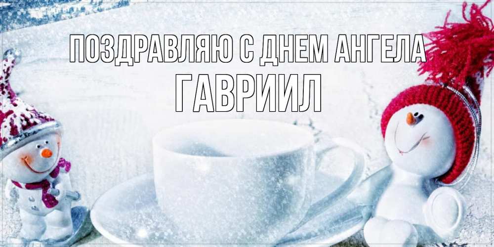 Открытка Поздравляю с днем Ангела Гавриил. открытка со снеговиками. чаша замерзшая