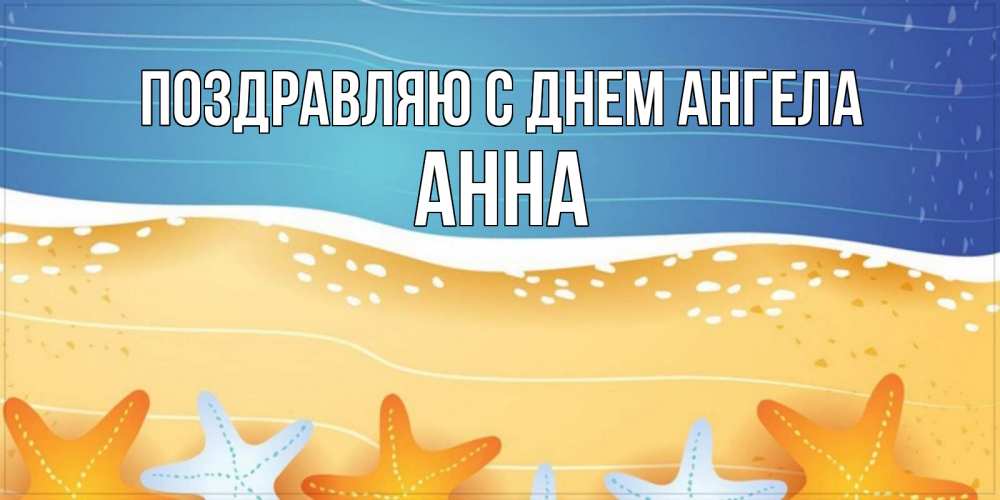 Открытка Поздравляю с днем Ангела Анна. морской пляж и звезды и песок. красивая морская тема