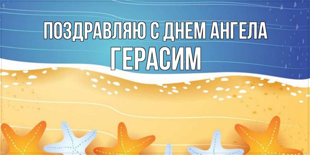 Открытка Поздравляю с днем Ангела Герасим. морской пляж и звезды и песок. красивая морская тема
