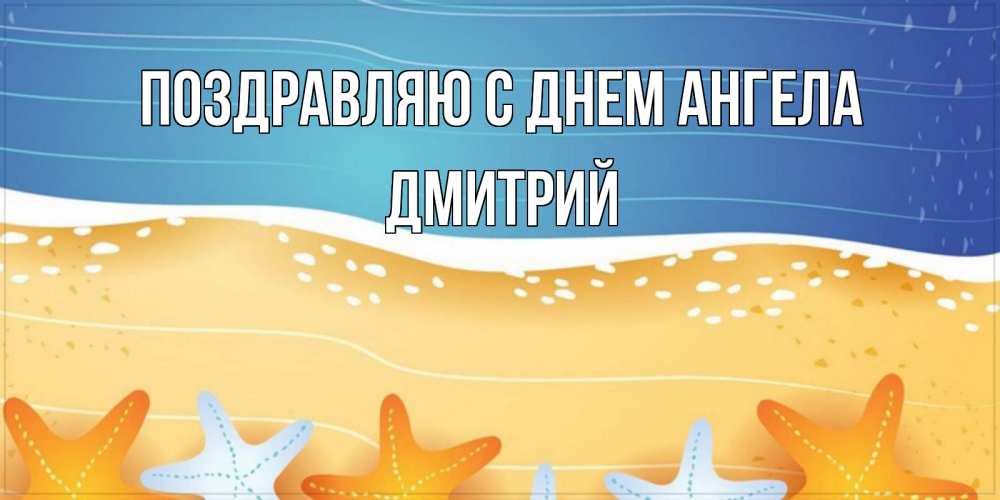 Открытка Поздравляю с днем Ангела Дмитрий. морской пляж и звезды и песок. красивая морская тема