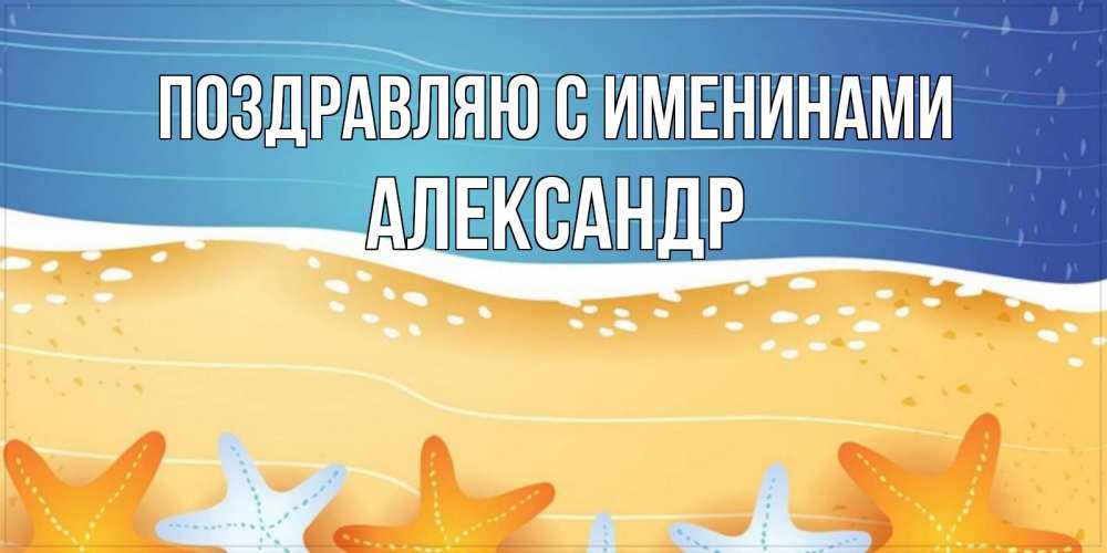 Открытка Поздравляю с именинами Александр. морской пляж и звезды и песок. красивая морская тема