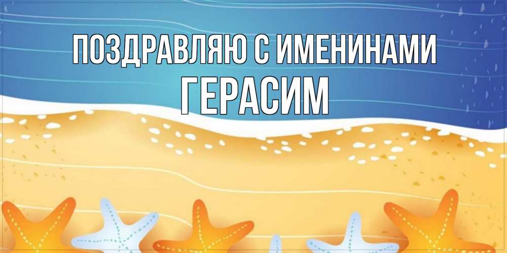 Открытка Поздравляю с именинами Герасим. морской пляж и звезды и песок. красивая морская тема