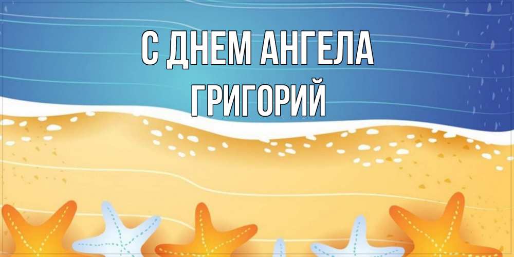 Открытка С днем Ангела Григорий. морской пляж и звезды и песок. красивая морская тема