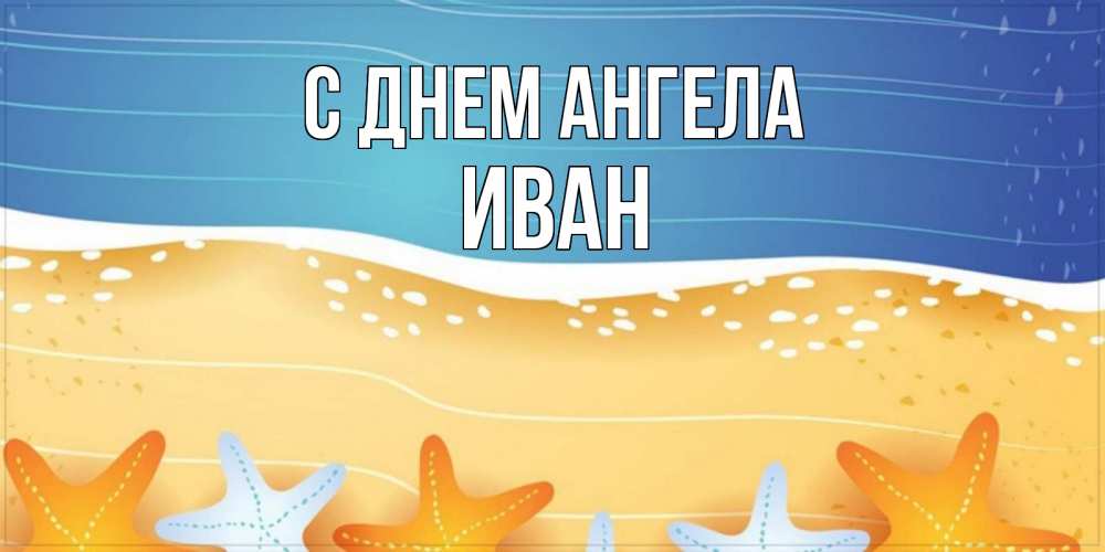 Открытка С днем Ангела Иван. морской пляж и звезды и песок. красивая морская тема