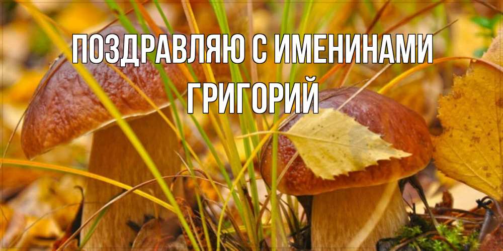 Открытка Поздравляю с именинами Григорий. вот и грибочки хорошего утра осенью. осенние грибы