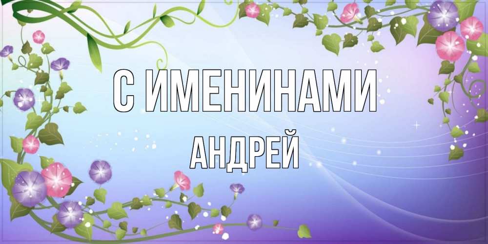 Открытка С именинами Андрей. открытка с рамкой из цветов. хорошего дня