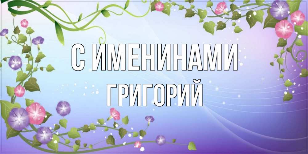 Открытка С именинами Григорий. открытка с рамкой из цветов. хорошего дня