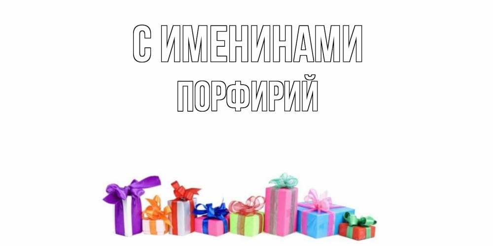 Открытка С именинами Порфирий. Открытка с разноцветными коробками ко дню рождения. Коробка,