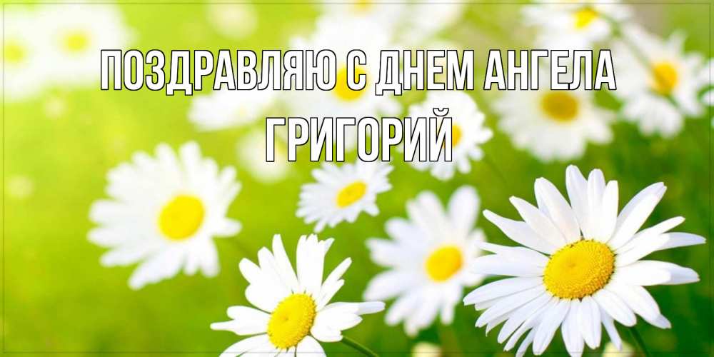 Открытка Поздравляю с днем Ангела Григорий. прекрасные ромашки. открытка с ромашками на зеленом фоне