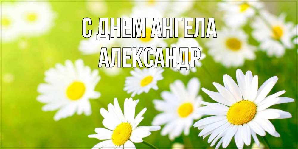 Открытка С днем Ангела Александр. прекрасные ромашки. открытка с ромашками на зеленом фоне