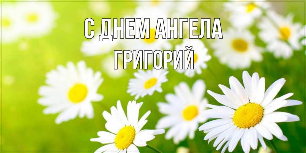 Открытка С днем Ангела Григорий. прекрасные ромашки. открытка с ромашками на зеленом фоне