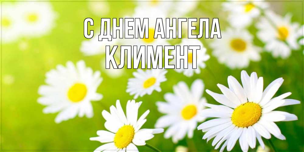 Открытка С днем Ангела Климент. прекрасные ромашки. открытка с ромашками на зеленом фоне