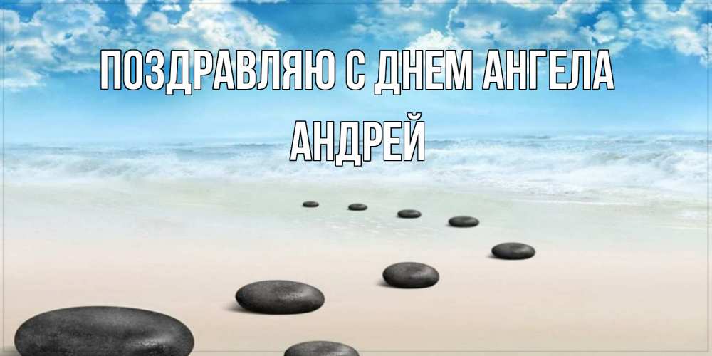 Открытка Поздравляю с днем Ангела Андрей. доброе утро с морскими камушками. море небо и песок