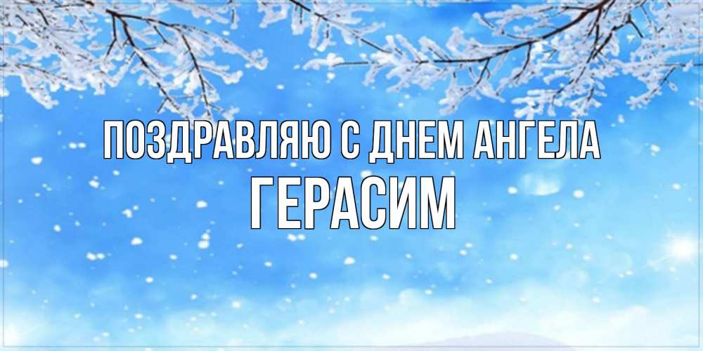 Открытка Поздравляю с днем Ангела Герасим. зимнее утро снег идет. снег изморозь и зима
