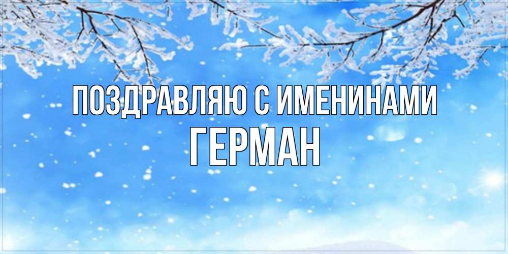 Открытка Поздравляю с именинами Герман. зимнее утро снег идет. снег изморозь и зима