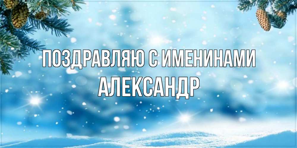 Открытка Поздравляю с именинами Александр. открытка с шишками. зимнее доброе утро