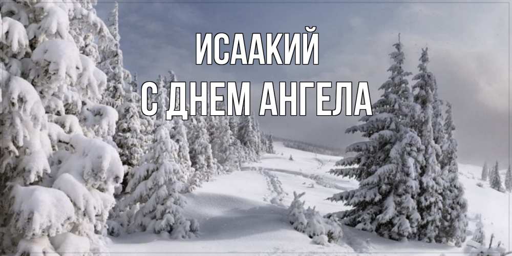 Открытка Исаакий С днем ангела. зимний лес. пасмурное утро