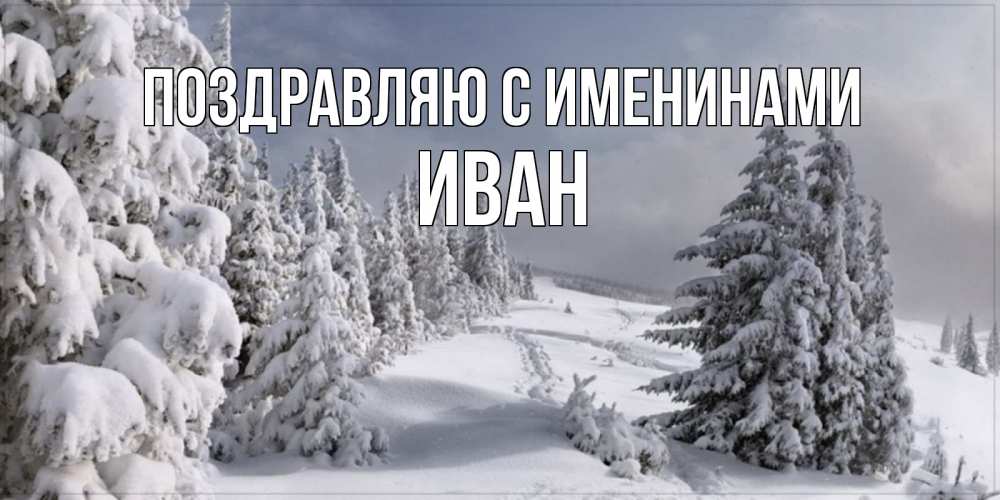 Открытка Поздравляю с именинами Иван. зимний лес. пасмурное утро