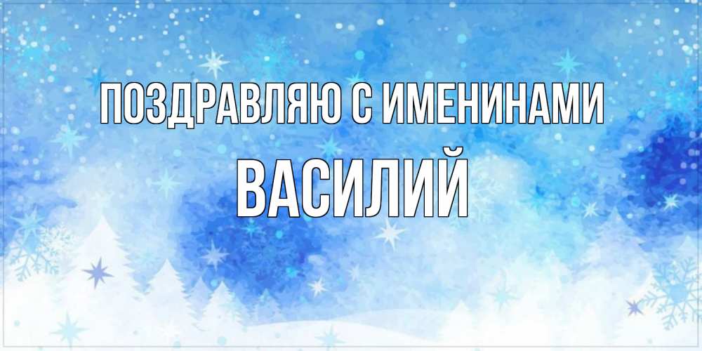 Открытка Поздравляю с именинами Василий. зимняя абстрактная открытка. зима и снежинки