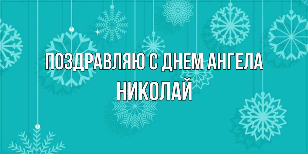 Открытка Поздравляю с днем Ангела Николай. зима пришла снежинки на фоне. открытка со снежинками