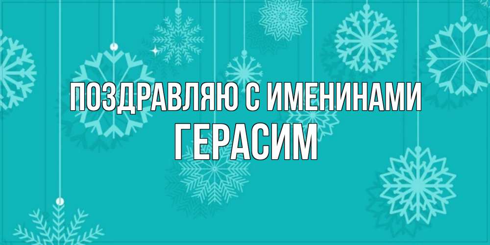 Открытка Поздравляю с именинами Герасим. зима пришла снежинки на фоне. открытка со снежинками