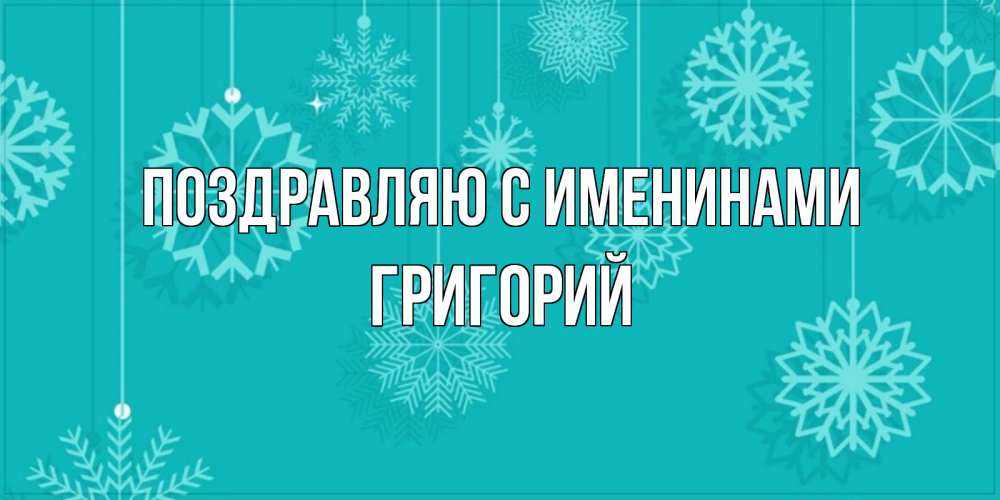 Открытка Поздравляю с именинами Григорий. зима пришла снежинки на фоне. открытка со снежинками