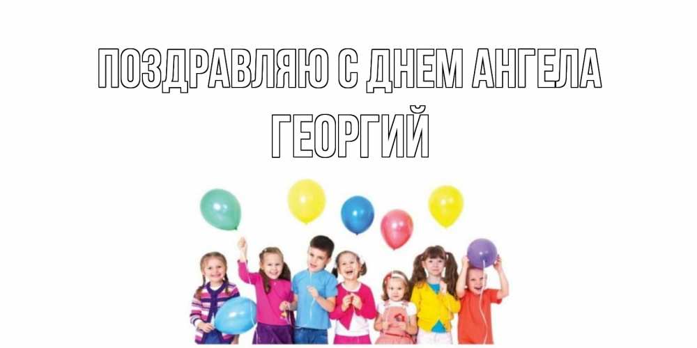 Открытка Поздравляю с днем Ангела Георгий. Открытка с детьми и воздушными шарами на день рождения. Дети, шары