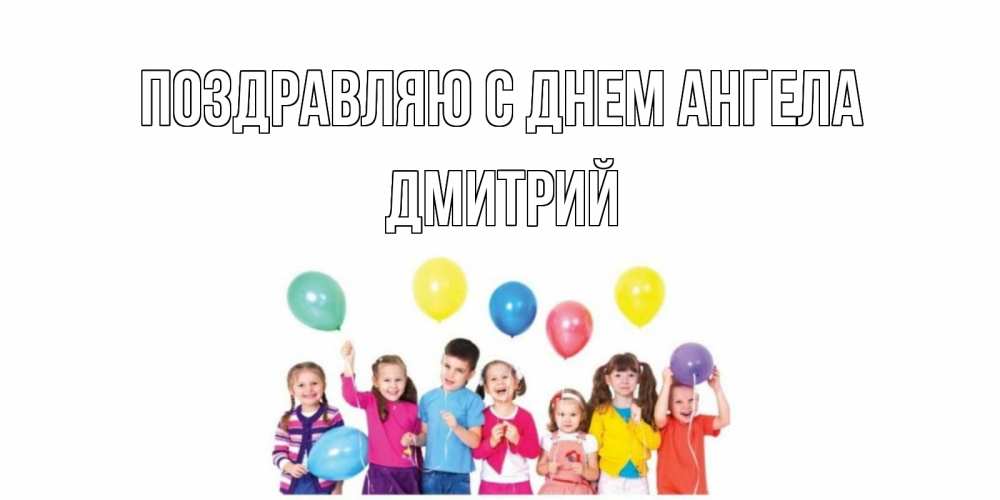 Открытка Поздравляю с днем Ангела Дмитрий. Открытка с детьми и воздушными шарами на день рождения. Дети, шары
