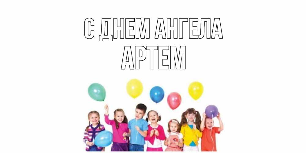Открытка С днем Ангела Артем. Открытка с детьми и воздушными шарами на день рождения. Дети, шары