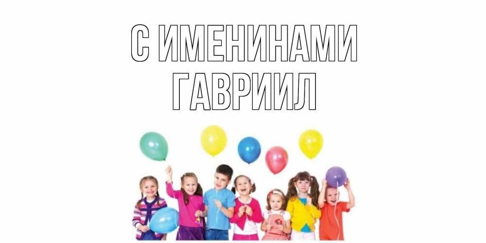 Открытка С именинами Гавриил. Открытка с детьми и воздушными шарами на день рождения. Дети, шары