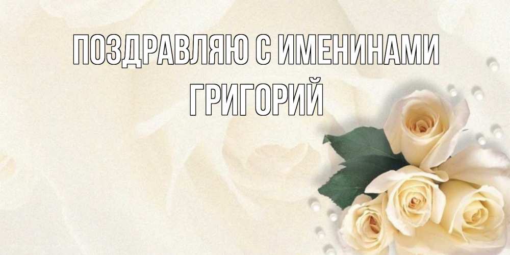 Открытка Поздравляю с именинами Григорий. Открытка с белыми розами для подписывания. поздравления на день рождения с именем