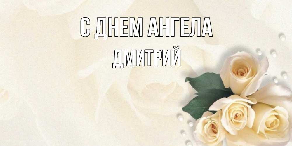 Открытка С днем Ангела Дмитрий. Открытка с белыми розами для подписывания. поздравления на день рождения с именем