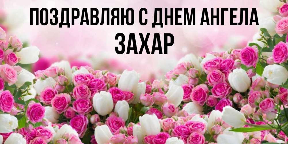 Открытка Поздравляю с днем Ангела Захар. огромное количество роз на открытке. открытка с разными розами