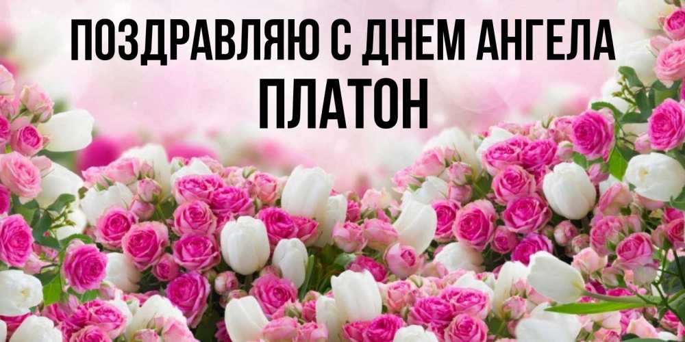 Открытка Поздравляю с днем Ангела Платон. огромное количество роз на открытке. открытка с разными розами