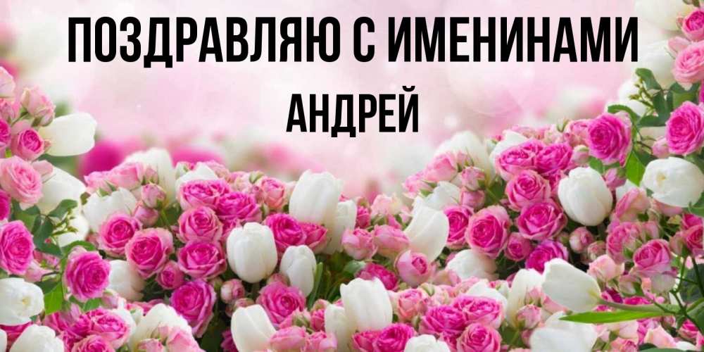 Открытка Поздравляю с именинами Андрей. огромное количество роз на открытке. открытка с разными розами