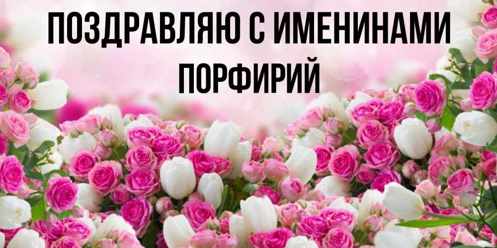 Открытка Поздравляю с именинами Порфирий. огромное количество роз на открытке. открытка с разными розами