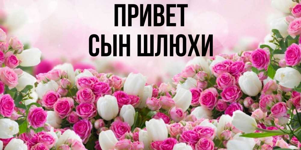 Открытка Привет Сын шлюхи. огромное количество роз на открытке. открытка с разными розами