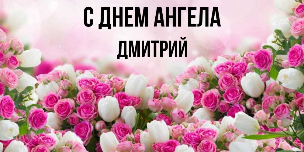 Открытка С днем Ангела Дмитрий. огромное количество роз на открытке. открытка с разными розами
