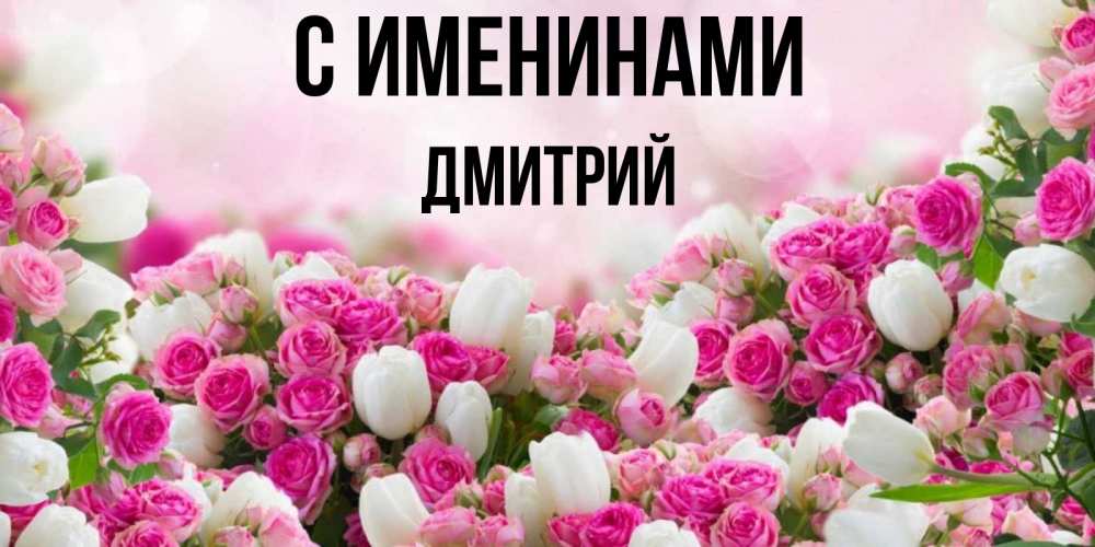 Открытка С именинами Дмитрий. огромное количество роз на открытке. открытка с разными розами