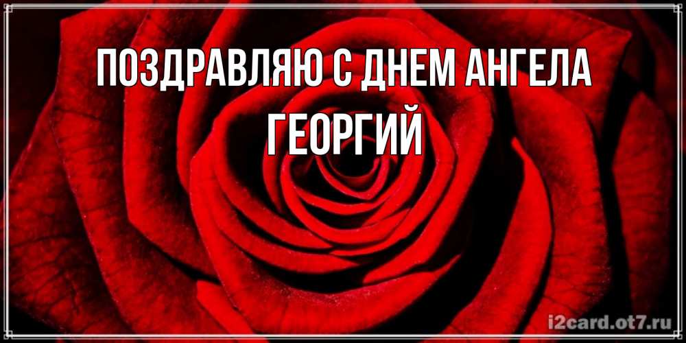Открытка Поздравляю с днем Ангела Георгий. красивая роза с прожилками. алая роза