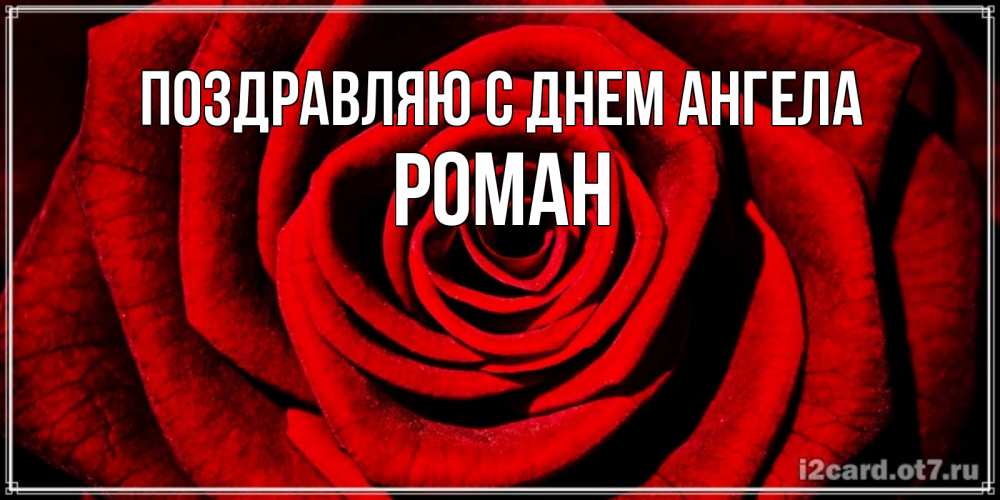 Открытка Поздравляю с днем Ангела Роман. красивая роза с прожилками. алая роза
