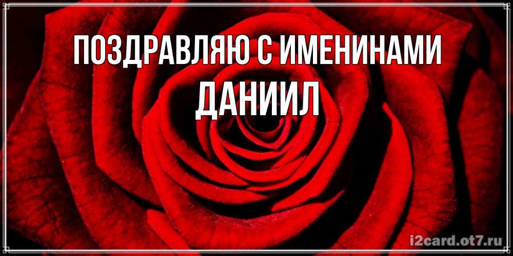 Открытка Поздравляю с именинами Даниил. красивая роза с прожилками. алая роза