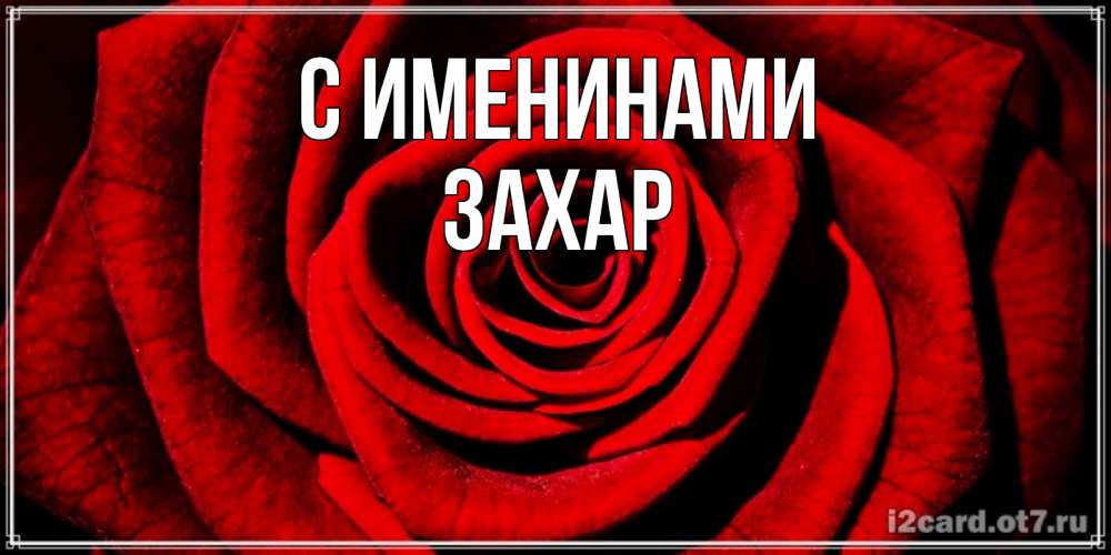 Открытка С именинами Захар. красивая роза с прожилками. алая роза
