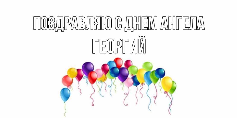 Открытка Поздравляю с днем Ангела Георгий. Открытка с воздушными шарами с разноцветными лентами ко дню рождения. Воздушные шары, ленты