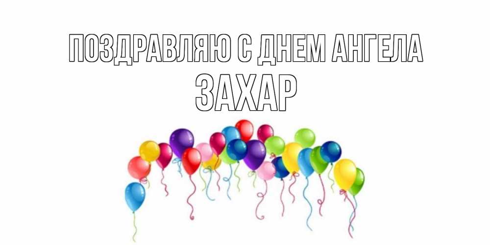 Открытка Поздравляю с днем Ангела Захар. Открытка с воздушными шарами с разноцветными лентами ко дню рождения. Воздушные шары, ленты