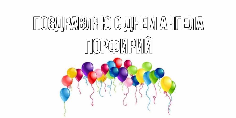 Открытка Поздравляю с днем Ангела Порфирий. Открытка с воздушными шарами с разноцветными лентами ко дню рождения. Воздушные шары, ленты
