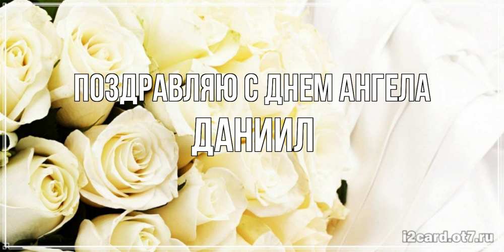 Открытка Поздравляю с днем Ангела Даниил. открытка с белыми розами с именем. белые розы в букете
